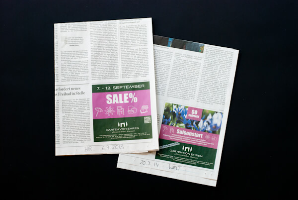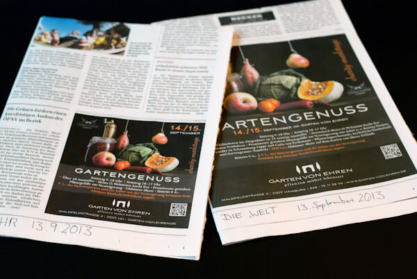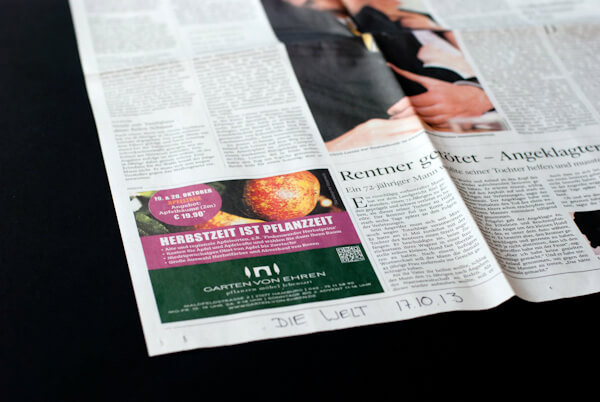 So sieht auch die Anzeige für Garten von Ehren heute aus